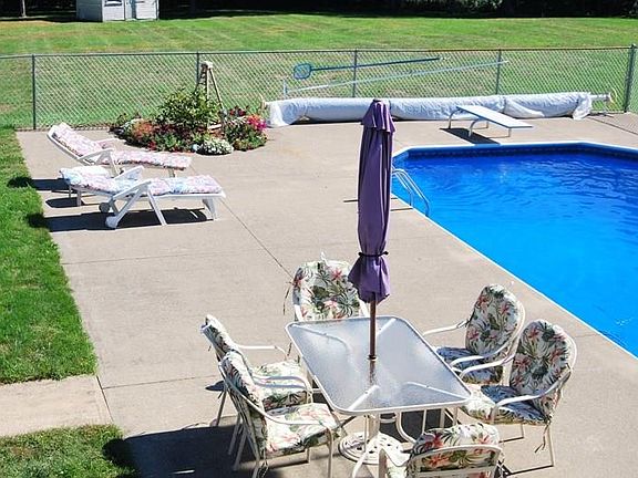 9+ BEAUTIFUL ENJOYABLE ACRES! This ranch has everything you are looking for. Plenty of living and recreational space. Updated galley kitchen, four large bedrooms, which includes a Master Suite with Jacuzzi tub, gleaming hardwoods throughout most of the house, large spacious living room, full walkout finished basement with newer wood stove, inground fenced in pool and patio, detached 4+ car garage. Whatever your need or desire, this home will satisfy it. Don't miss out on this one. Call today for a showing. (Taxes are shown without STAR exempitons)