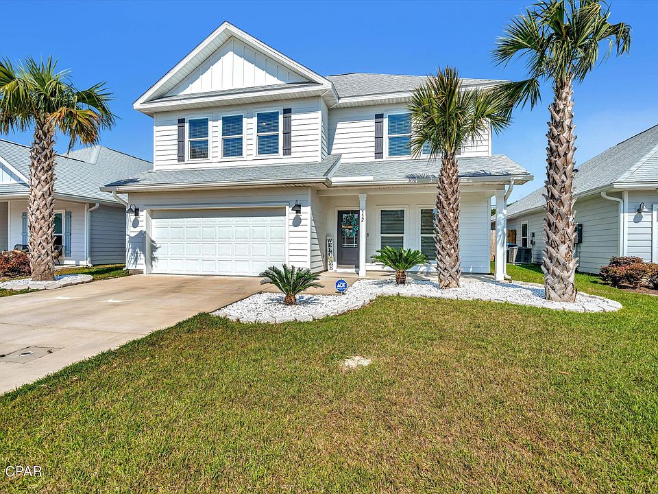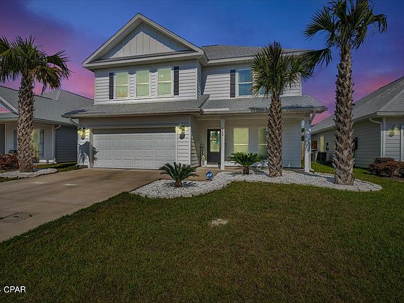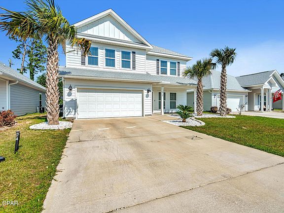 Located at the end of a quiet cul-de-sac this immaculate 4BR/3.5BA home is ready for you! Over 2,600 square feet of living space with primary bedroom down including huge walk-in closet, overlooking privacy-fenced backyard with covered patio for your enjoyment. Master bath offers nice-sized walk in shower and separate tub. Kitchen boasts stainless appliances, granite countertops and smooth-top stove with plenty of cabinetry and pantry. This craftsman style home has plenty of storage too. Upstairs you'll find 3 additional bedrooms, a jack and jill bath and a spacious family/game room perfect for a pool table, mancave or second living area. Vinyl plank flooring down with carpeting up. Built in 2021 so you'll get smart-home technology with keyless entry, echo dot, touch screen panel and doorbell. Location is perfect...you can be in town or the navy base in 5 minutes, the State Park and beaches in 10, plus fabulous Grand Lagoon with waterfront dining and shopping nearby.