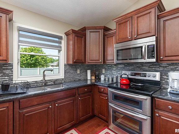 Enjoy small town living in beautiful Blue Grass, Iowa! Check out this great 4 bed, 3 bath ranch-style home located on a quiet cul-de-sac! Only a 15 minute drive to either Davenport or Muscatine. Main living space includes granite countertops, custom backsplash, hardwood floors, and built-in entertainment center. Outdoor spaces are highlighted by manicured landscaping in both front and back yards and maintenance free fencing around a picturesque back yard with a patio. Featuring zero step entry on the main level from front entrance and garage, this home also includes updated master bath with zero step tile shower. The finished basement has room for so many possibilities with a rec room, family room, 4th bedroom, den/workout room, 3/4 bath and generous storage spaces.