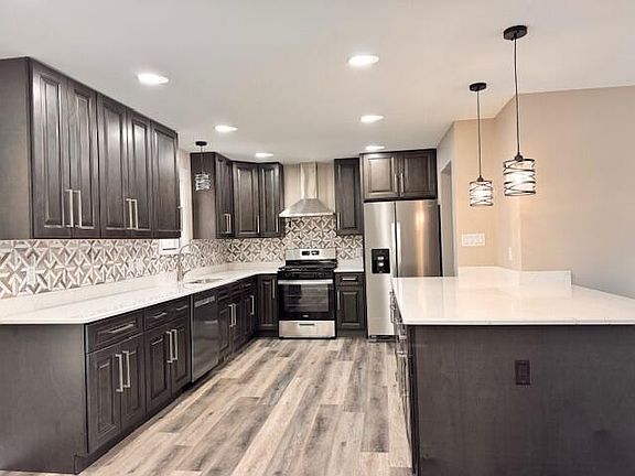 Welcome to your dream oasis! This beautifully updated house boasts a gourmet kitchen featuring ample counter space, soft-close cabinets reaching the ceiling, exquisite countertops, and an inviting island complete with a built-in microwave and stunning tile backsplash. Cook in style with a sleek stainless steel pyramid range hood that adds a touch of sophistication.Enjoy brand-new flooring throughout, complemented by elegant Craftsman wood doors that exude charm. Stay comfortable year-round with a brand-new central air system, hot water heater, and furnace.Retreat to updated bathrooms featuring LED-lit mirrors, while the master bathroom indulges you with a luxurious glass door shower. Natural light floods every corner of this home, creating a warm and inviting atmosphere.Step outside to your private backyard, perfect for entertaining, complete with a cozy patio.