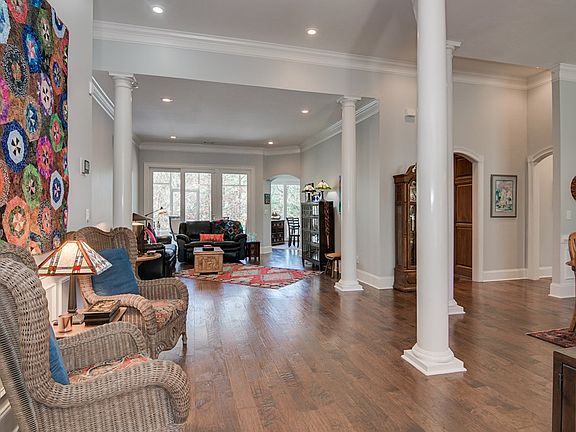 WATERFRONT RETREAT - Home rests on secluded 4-ACRE LOT with 377 ft of lake frontage. Open floor plan bathed in natural light. Offers 4 BR/2.5 Baths, walls of windows & spectacular lake views from every room. Welcoming foyer opens to grand dining hall, study/parlor & living area. Den features inviting hearth framed by custom cabinetry. Gourmet kitchen with center island, granite counters/snack bar & upgraded cabinets BONUS (or 4th BR) w/walk-in attic storage. Private, park-like setting on private wooded lane. 20 MAJOR UPGRADES past year, including NEW ROOF & HVAC system.