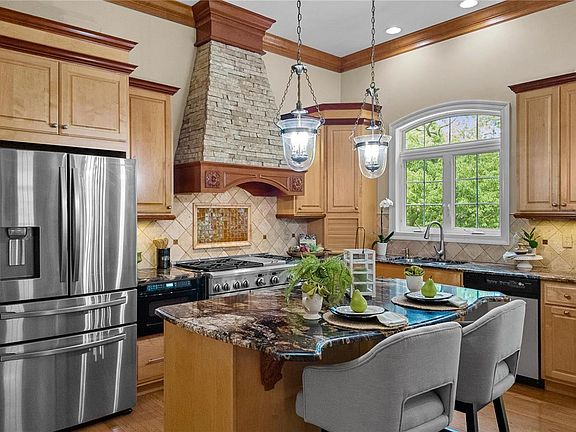 Welcome to this exquisite executive ranch with a wooded lot backing to Lake Forest Golf Course. The main level features an office, a spacious great room, and a formal dining room, perfect for entertaining guests or hosting family gatherings. The luxury owner's suite is a true retreat, boasting a coffered ceiling, bay window, separate closets with organizers, dual vanities, a soaking tub, and a separate shower. The heart of the home is the stunning kitchen, complete with a granite center island and a chef style gas range with a double oven. The kitchen, breakfast room and hearth room are open creating a perfect space for everyday living. Step outside to the newer deck and watch the sunset or take the path out to your private gazebo. The walkout lower level is an entertainer's dream, featuring a large family room with a gas fireplace, a wet bar, and built ins. Two bedrooms with a Jack N Jill bath complete this level, offering ample space for guests or family members.