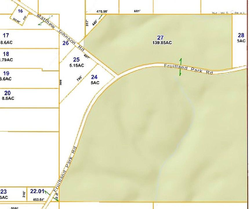140 acres of timber land for sale @ $3,600 per acre. Area north of Fruitland Park RD. has just been replanted and area south of Fruitland Rd is volunteer after being cut in 2005.