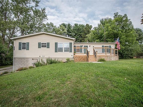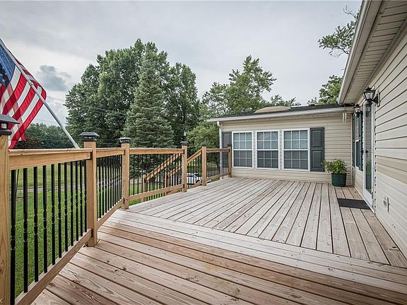 GREAT FIND IN PERRY LOCAL SCHOOLS! Cathedral ceilings and skylights offer an open, airy feel to this well thought out floor plan. Two large living spaces include the living room with hardwood floor, ventless gas fireplace and patio door to the backyard plus an inviting family room with crown molding and sculpted Berber carpet. The sun-filled kitchen includes a dining area with built-in china cabinet, an abundance of cabinets, center island, ceramic tile floor and easy access to the 1st-floor laundry room. A reverse osmosis system provides filtered water to the sink tap as well as the refrigerator. The desirable split bedroom design has two bedrooms on one side of the home with access to the main full bath. The master bedroom is on the opposite side for added privacy and is complemented by a full bath with dual vanity, skylights and tub/shower combo. Head outside to access the tandem 2 car garage with 200 amp service and basement access. Rough plumbing has already been done creating the potential for another bathroom or kitchenette and still have plenty of space for storage. Enjoy the summer weather on the newer front deck or the more private setting of the back deck with views of mature pine trees. Recent updates with approximate dates include basement (2003), ceramic tile in kitchen & baths & roof (2008), hardwood floor & drywall in living area (2015), front deck (2017). Neutral, clean and move-in ready with the offer of a 1 year home warranty as an added bonus!