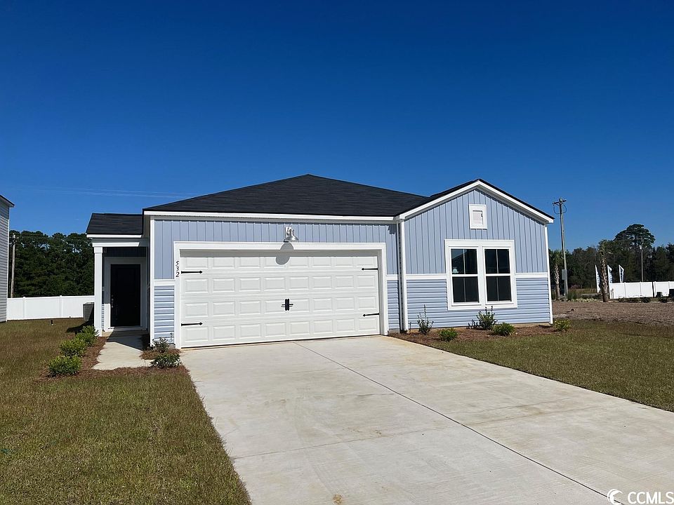 Our Newest Community located just off Hwy 57 in Little River. This Harrisburg is a 4 bedroom 2 bath with a large owners suite walk in closet, and large front bedroom. This home features Granite kitchen countertops with stainless steel appliances. A gas community with a tankless water heater and gas stove and heat. Low HOA. Pictures are of a similar completed home. Buyer to verify