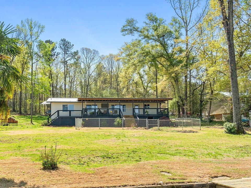 Deeded lakefront living on Jackson Lake, for under $300k! As soon as you arrive you'll you notice the nearly level lot and plenty of room for parking! Step inside the foyer, and you're greeted by a bright, open concept living space and gorgeous lake view. Three comfy bedrooms mean everyone gets their own space, and hey, that office? Could be perfect as a fourth bedroom for guests or that hobby you've been wanting to dive into. But let's be real, you'll be spending most of your time on the massive, covered back porch. Sunset views over the lake? Check. Morning coffee with the birds? Double-check. And speaking of the lake, you've got a stationary dock ready for your boat or just fishing or relaxing by the water. The fenced back and side yards are perfect for spending time outdoors, and the location on the lake makes cruising out to big water a breeze. Oh, and the greenspace just across the water? It gives you a level of privacy you just don't find on most lake properties. Basically, this place is all about easy living and making memories on the water. Come see it, you won't want to leave!