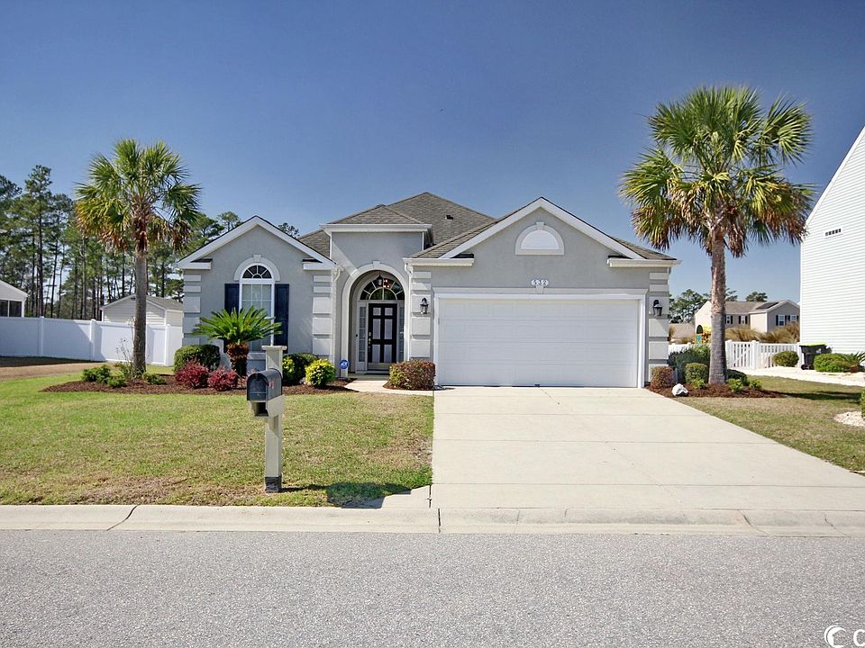 Well maintained 3BR/2BA home in the desirable community of Woodbury. This popular Eaton model features a very open floor plan with plenty of natural light. You are greeted by an impressive Foyer with wood flooring that leads into the Living Room/Dining Area combo with high, smooth ceilings. Larger Kitchen includes upgraded 42" Cherry cabinets, upgraded counter tops, pantry, Breakfast Bar and an additional Breakfast Nook. Living Room features wood flooring, upgraded ceiling fan, accent shelving, transom windows and two sliders that lead to the large Screened Porch. Master Suite boasts tray ceilings, large Walk-In Closet, Garden Tub, Double Sinks and Walk-In Shower. Two more bedrooms, another full bath, Laundry Room, 2-Car Garage and mature landscaping complete with palm trees and 4-zone irrigation system. Community includes a pool and clubhouse. Location provides easy access to Bypass 17, Highway 544 and just a short drive to Market Common. Sellers are offering the balance of a Home Warranty that is valid through September 23, 2023 with no transfer fee. This property qualifies for 100% financing, subject to terms and conditions. Contact your Agent for more information or see Agent to Agent Remarks.