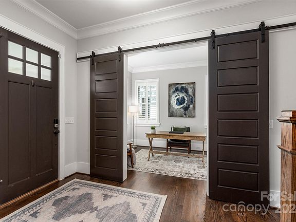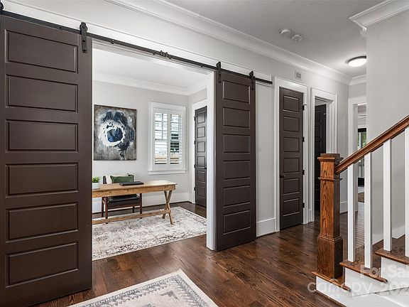 Stunning Craftsman nestled in the heart of Myers Park exudes charm & elegance. The expansive kitchen is a chef's dream, boasting high-end finishes including quartz countertops, large marble eat-in island, marble backsplash, two-tone cabinetry & Thermador appliances. Open concept w/custom multiple built-ins, gas fireplace, coffered ceiling, wainscoting, crown molding & new hardwoods on the main! The Primary suite is a true retreat, complete w/ hardwood floors, elegant soaking tub, marble-tiled shower, dual vanities & walk-in closet! Additional features include library style hallway, drop zone, separate laundry room w/ mud sink, private office w/ sliding doors & large bonus room ideal for hobbies or entertaining, an amazing screened in porch with custom shades & fenced yard! Myers Park school district, Sugar Creek greenway one block away! No home across the street with tree-lined porch view! Walking distance to Park Road Shopping Center! Appraised over $118K over list price!