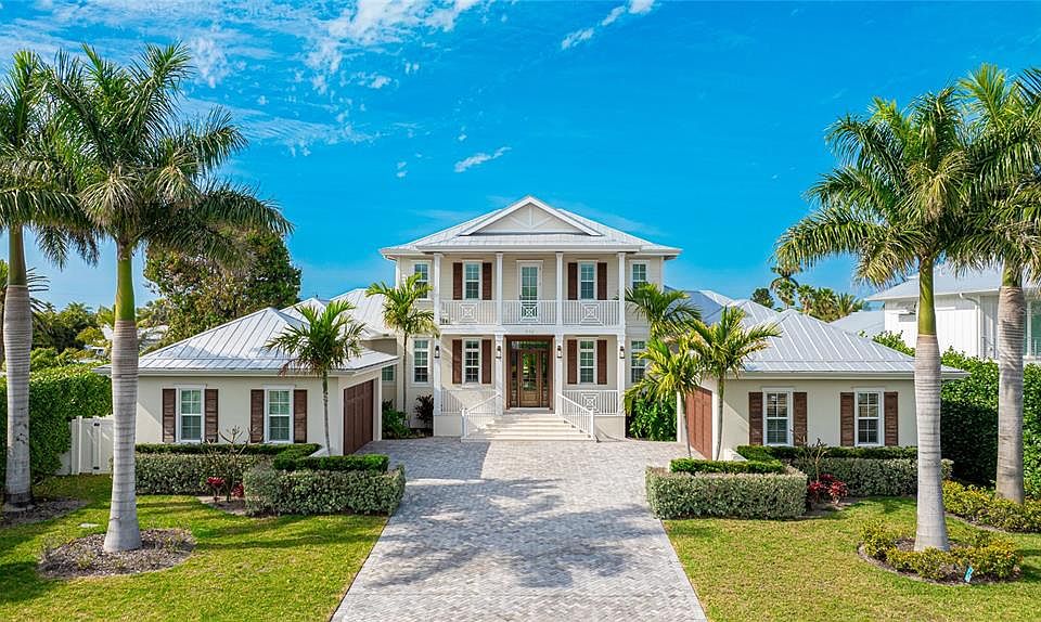 Timeless classic British West Indies inspired home located on a deep water canal with easy access to Bimini Bay and the Intracoastal Waterway. This home offers beauty and privacy inside and out, with mature landscaping, coffered ceilings in the living, dining, and kitchen areas, as well as French doors, plantation shutters and engineered hardwood flooring throughout. The chef’s kitchen features solid wood custom cabinetry with soft close drawers both here and in the spacious butler’s pantry. Add stunning granite countertops, a bar area, Wolf and Subzero appliances, a 6 burner gas range, two ovens and a microwave all ready for entertaining. A private family seating area is adjacent to the kitchen behind French doors creating a great place to relax and enjoy the view or watch TV. A convenient main floor Main Suite offers French doors leading to the lanai, pool, and spa and a large walk in closet The main bath features luxurious Calacatta marble floors and shower walls in the oversize shower, a large soaking tub, and his and hers vanities. The three welcoming bedrooms on the second floor open out to the covered lanai with views of Bimini Bay. Each bedroom also has its own ensuite bathroom, each with Calacatta marble floors and individual designs for each shower wall. A large heated salt water pool and spa is surrounded by authentic shell stone which also covers the lanai floor. The Trex dock is equipped with an 8,000 lb. boat lift. Two 2 car garages offer plenty of space for vehicles and storage. This gracious and serene Moss built home is perfect for the discerning client who is seeking only the finest home.