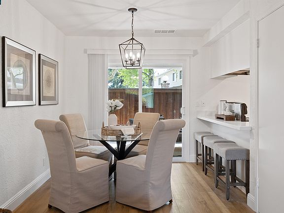 Charming single level, 3 bedroom/2 bath end-unit townhouse in Twin Creek Gardens. Newly updated and cute as can be! Bright central living room connects to dining area and café counter pass-thru to kitchen. Brand new flooring throughout, freshly painted, completely remodeled kitchen, bathrooms, light fixtures, doors, hardware and more! Eating area open to main living space. Convenient in-unit laundry, plus 3 additional hallway closets provides ample storage. Brand new Slider leads to sunny quiet patio with storage closet. Large master suite with connecting bathroom. Two additional spacious bedrooms with shared remodeled bath. Relax by the sparkling pool. Minutes from Courtyard Center offering a multitude of shopping and dining. Award-winning San Ramon schools, easy access to 680. One assigned carport close to unit. Low HOA, Pool, and Guest Parking.