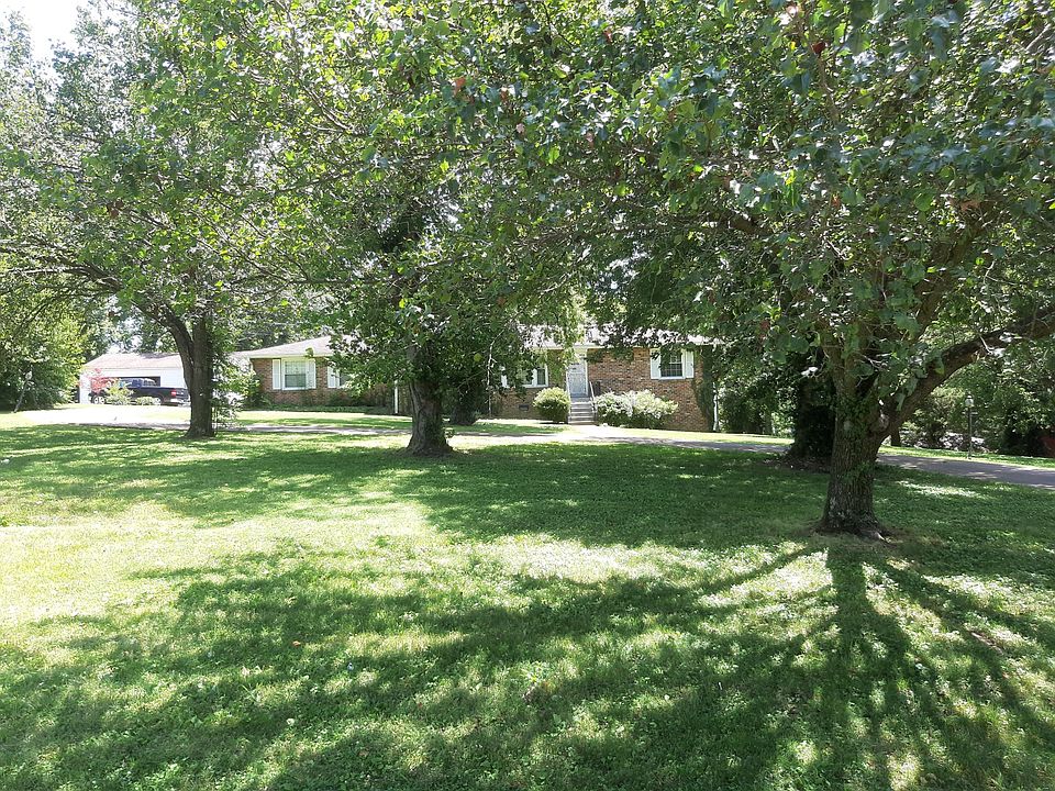 NEW price reflects for updates. Hardwoods under carpets. Kitchen re-done few years ago. One level. All appliances in kitchen remain. LOTS of windows. Separate dining area. Den. Laundry rm. Much more room! Fireplace AS IS. House AS IS. Yard is one of the largest in area over acre. Gorgeous trees. Circular driveway & a straight one that goes to a huge 2 door garage & it connects to circular. Garage 40x24 has electric, lights, remote opener. SEE PICS MONEY MAKER!!!