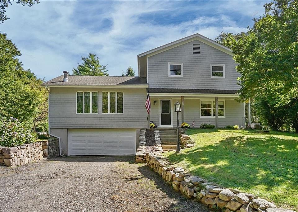 Set on an oversized 11.6-acre lot in Western Coventry, this private retreat offers the true beauty of New England living. Set well back from the road, the property combines modern updates with rustic charm. It offers cleared acreage, a private pond and wooded land with trails. It also qualifies for open space tax classification, providing valuable long-term savings. Inside, the first floor is warm & inviting, highlighted by an open layout with updated flooring, a spacious kitchen, and dining and living areas that flow seamlessly throughout. An oversized family room with a wood stove opens to an enclosed patio overlooking the peaceful rear grounds - perfect for relaxing or entertaining. Additional conveniences on the main level include first-floor laundry and lavette. Upstairs, you’ll find 4 bedrooms and a full bath, including a generously sized primary bedroom. Practical features include propane for cooking, a backup generator for added peace of mind, and easy access to abundant attic storage. Outdoors, you'll appreciate a 2-car garage and a 20' x 30' barn with loft, providing endless potential for hobbies, storage, or animals. With ample cleared land, private trails, and direct access to the Coventry Greenway & Trestle Trail, this property is a rare opportunity for those seeking privacy, recreation, and convenience in an exceptional setting. Turn this one-of-a-kind opportunity into your forever home and dream retreat, surrounded by nature, privacy, and endless possibilities.
