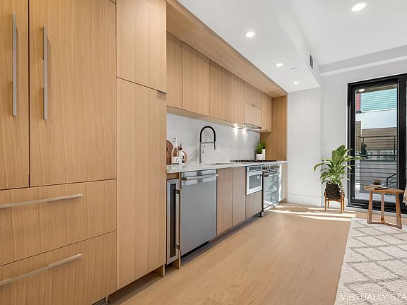 Nestled in the heart of Williamsburg, 532 Lorimer St. is a brand new development featuring 9 spacious and light filled homes in studio, 2- and 3-bedroom layouts. All apartments come with their very own outdoor space and there is parking and storage available for sale. Each unit is a thoughtful blend of attention to detail and open-concept modern living. Features include wide plank white oak floors, a ton of natural light through oversized windows, in-unit washer/dryer, central heating and cooling, lovely bathrooms with chic fixtures and finishes, and spacious modern kitchens featuring sleek Quartz countertops, matching backsplashes, breakfast counters and high-end appliances from Bertazzoni, Liebherr and Bosch. Unit 1B is an impeccably designed 1,102 Sf apartment, bathed in natural light and exudes contemporary elegance with 1.5 baths sleek bathrooms featuring heated floors and oversized windows with triple pane glass. Direct entry brings you into a gracious layout, with high ceilings and a welcoming open floorplan for relaxing, dining and entertaining. The large living and dining area has floor-to-ceiling windows and connects to a stunning large kitchen styled with white oak cabinetry, quartz countertops, and a generous island for extra seating and storage. For the chef in you, there is a Bertazzoni Master Series 5-burner stove/range, Liebherr paneled refrigerator, Bosch dishwasher, and Summit wine fridge for your favorite vintage. 1B includes its very own 896 Sf backyard and deck area space for enjoying the beautiful outdoors. Conveniently located in prime Williamsburg, 532 Lorimer is surrounded by a large and diverse array of restaurants, bars, cafes, and shops and just minutes away from both the G and L subway trains. Amenities include a bicycle room, private storage and on-site parking available for purchase, and a spacious rooftop deck with soaring city views of the Manhattan skyline. The complete offering terms are in an offering plan available from Sponsor. File No. CD20-0101 Sponsor: BCBS Lorimer LLC 532-534 Lorimer Street, Brooklyn, NY 11211. Equal Housing Opportunity.