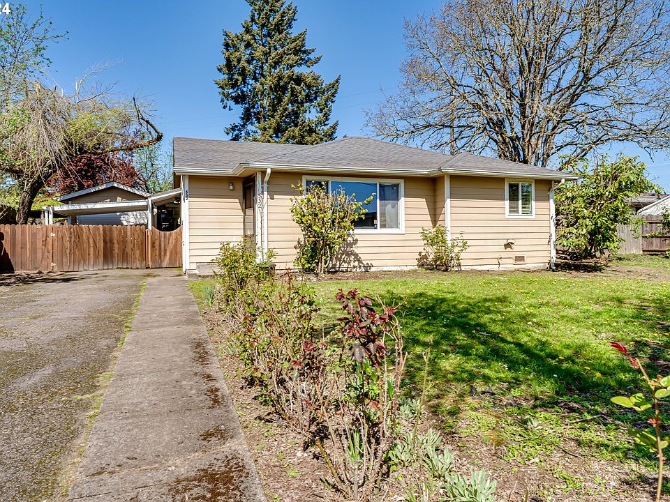 Charming cottage in a convenient Springfield location! Its spacious, light-filled living room features laminate floors. Lovely kitchen includes all appliances. Large primary bedroom provides an adjacent office nook. A previous owner combined two bedrooms together, but it could easily be converted back for three bedrooms total. The backyard is a private oasis, with a covered patio, ample garden space and a tool/garden shed. 4J schools. Close to Riverbend, easy access to shopping, restaurants, highways & more. Don't miss out!