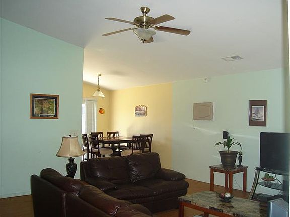 Darling 3/2, open floor plan, lamanite flooring in the living room, hallway & 3 bedrooms, both baths have tile flooring, backyard w/lemon,cherry & nectarine trees, storage shed,water softener, Concrete around house easy to care.