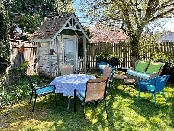 This home has rented Charming (unfurnished) house with fully fenced yard & off-street parking ready for Fido in fun & funky Phinneywood! New paint, reduced utilities. Walk score 88 Bike score 80. Bus downtown in 10 minutes via Rapid Ride, walk to Green Lake. Well insulated, quiet. One bedroom, full bath, vinyl plank floors, spacious living room with wood stove. Electric heat. Full kitchen, dining nook, washer/dryer, storage shed. Small/medium well-behaved dog welcome, no diggers. *Backyard cottage a separate rental: studio with 1/2 bath. Or rent both for 4200 monthly. Available October 5th. *Do not disturb current tenants First month's rent and 50% of last month's rent plus security deposit of $1000 at lease signing. ($4,525 total) 1 year lease required. Utilities appx $250/month single occupancy, $280/month double occupancy, includes wifi. No more than 2 person occupancy. Lawn mowing and flowerbed maintenance of front yard is the responsibility of tenant. Lawn mower & tools provided. Storage shed provided. Non Smoking property. Small dog ok, no cats. Comprehensive reusable tenant screening report accepted. Adequate income, credit history, and prior rental history evaluated. Apply through Zillow. Thank you! :)