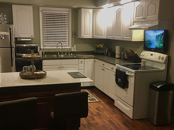 This updated two bedroom ranch is move-in ready. Originally a three bedroom, two of the bedrooms have been combined to create a large master bedroom with two closets, one of which is a walk-in. All of the home appliances will convey to the new owners. The house is on a crawl space so everything is situated conveniently on the main level. The electrical has been updated including GFI's in the bathroom and kitchen on the 100 amp system. There's fresh landscaping in both the front and back, with the back secured by a wooden privacy fence surrounding the back yard. There is ample storage with the two detached garages and a storage shed.