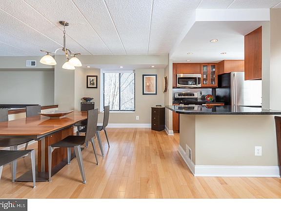 Beautifully updated end unit townhome in the heart of Media Borough. This extraordinary unit has 3 bedrooms, 2 full baths, and 2 half baths. Gorgeous hardwood floors throughout. Open-concept kitchen with pantry. Enjoy company at the granite countertop, or at the full-sized dinner table in the dining area with a balcony overlooking a fabulous family room with wood burning fireplace. Updated powder room conveniently located near front entrance. Sliding glass doors lead to an outdoor deck with a view of wooded area and the creek below. A second family room on the lower level has stunning wall-to-wall custom cabinetry and sliders to additional deck with separate exit. This area has its own bedroom and half-bath with a spacious, updated laundry room. Master bedroom has well-lighted closet organizers, beautiful hardwood floors, and an updated master bath. Additional bedroom with its own updated full bath is currently used as office. Tons of storage space. HOA includes landscaping, snow removal, and exterior maintenance. Two designated parking spots directly out front. Plenty of additional parking for guests yards away. Newer hot water heater, Newer roof. Walking distance to downtown Media. Enjoy the restaurants, shopping, and the many events and festivals. Award winning Rose Tree Media School District. Minutes away from I-95, I-476, train to Philadelphia, and other public transportation.
