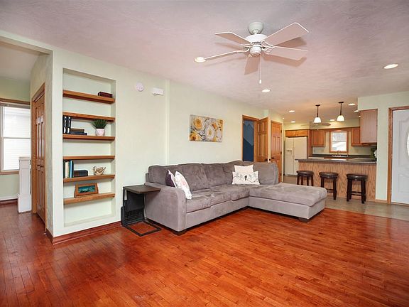 This versatile home offers a flexible design with the comfort and ease of one-story living with additional upper bedroom space! Perfect for entertaining or just relaxing the the expansive open concept floor plan combines both the living room and eat in kitchen. The oversized living room can accommodate large furnishing and is flanked with hardwood floors. Stocked with raised panel cabinetry the fully applianced kitchen is the hub of the home featuring breakfast bar and tons of counter prep space. Tucked off the living room is the main floor master with dual closets and a separate full bath with a HUGE tile walk-in shower. The upper level offers three additional bedrooms and a large walk-in attic space for storage. Additional features include: 2.5 car garage, covered front porch, ravine lot overlooking the park, full basement, and much more. Located close to downtown to partake in Appleton's festivals, events, numerous restaurants, and local shopping!