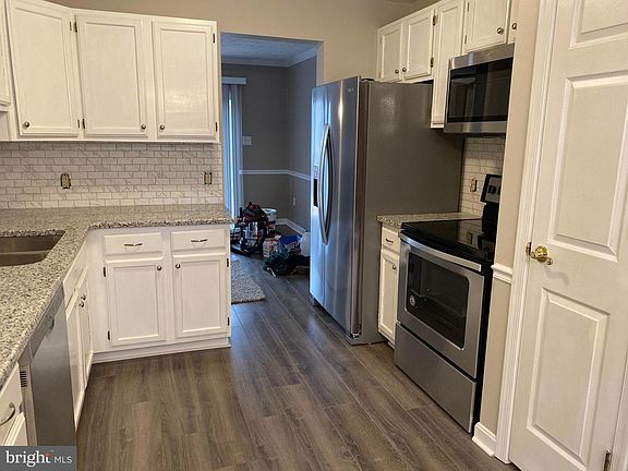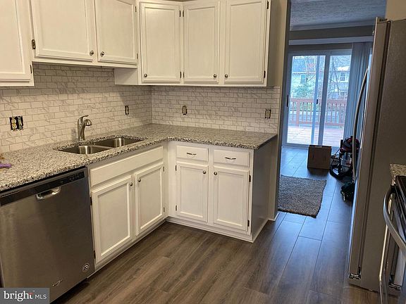 ABSOLUTELY GORGEOUS, TOTALLY RENOVATED END OF GROUP TOWNHOME ON QUIET COURT. WILL BE COMPLETED BY END OF MARCH . ALL NEW VINYL FRONT PORCH & NEW CONCRETE STEPS- BEING INSTALLED NEXT WEEK. NEW WOOD VINYL FLOORING THROUGHOUT MAIN LEVEL. BRIGHT NEW KITCHEN WITH WHITE CABINETS, GRANITE COUNTERTOPS, MARBLE BACKSPLASH, NEW STAINLESS APPLIANCES, NEW LIGHT FIXTURES. KITCHEN HAS LARGE WINDOWS AND PANTRY AND OPENS TO FAMILY ROOM THAT LEADS TO DECK. SPACIOUS FAMILY ROOM WITH FIREPLACE WITH MARBLE SURROUND AND NEW SCONCE LIGHTING, CEILING FAN. RENOVATED DECK OVERLOOKS FULLY FENCED YARD WITH SHED THAT BACKS TO WOODS. UPPER LEVEL FEATURES 3 LARGE BEDROOMS WITH CEILING FAN, CHAIR RAIL. MASTER BEDROOM HAS VAULTED CEILINGS AND DOUBLE CLOSETS. LUXURIOUS SPA LIKE BATHROOM FEATURES SOAKING TUB WITH DECORATIVE CERAMIC TILE SURROUND, SEPARATE TILED SHOWER, CERAMIC TILE FLOORS, NEW TOILET, FIXTURES & LIGHTING. UPPER AND LOWER LEVELS FEATURES NEW CARPET. FULLY FINISHED WALKOUT BASEMENT INCLUDES HUGE RECREATION ROOM, FULL BATHROOM WITH NEW CERAMIC TILE FLOORS, TILED SHOWER, NEW FIXTURES & LIGHTING. WORKSHOP AREA WITH WORK BENCH AND ADDITIONAL STORAGE. LAUNDRY ROOM WITH NEW WASHER & NEW DRYER, NEW HOT WATER HEATER, NEWER HVAC, UTILITY TUB AND SECOND STORAGE AREA. FRESHLY PAINTED NEUTRAL COLORS THROUGHOUT. COMMUNITY POOL. CONVENIENTLY LOCATED IN SMALL , QUIET NEIGHBORHOOD WITH PLENTY OF PARKING 5 MINUTES FROM ROUTE 95.