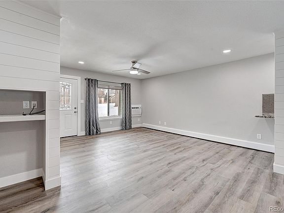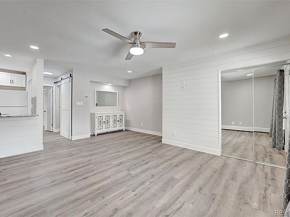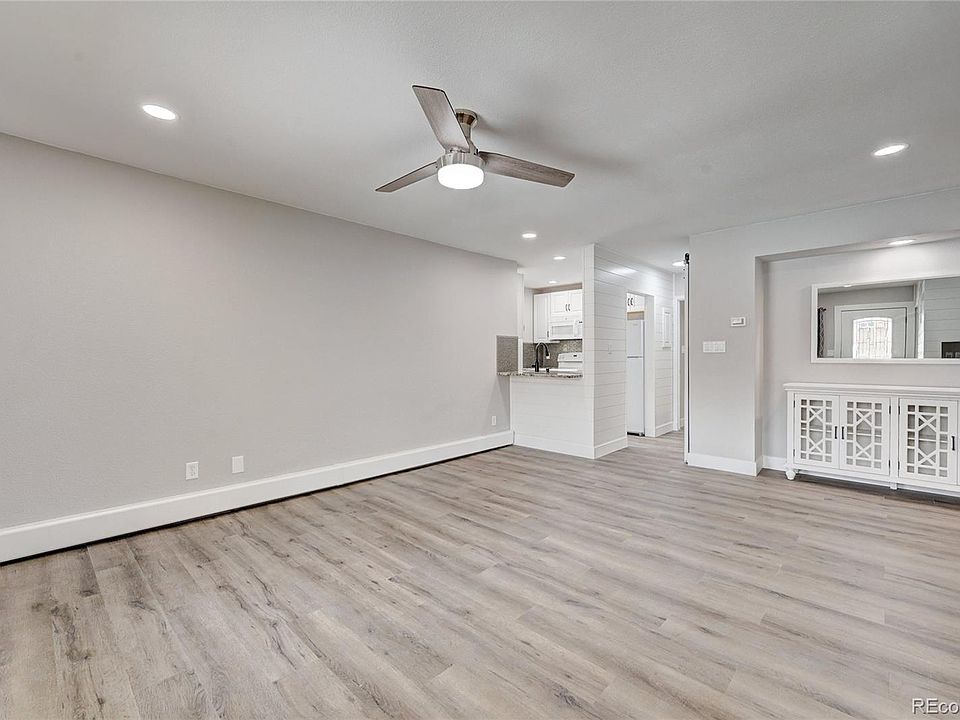 Open House 1/8/23 11 am -1 pm. Don't miss this professionally remodeled property in the heart of Castle Rock. Once you see it, you will want to call this light and bright, end-unit condo home. No expense was spared on the finishes throughout. New electrical along with can lights and ceiling fans were added to the rooms. The living room has a brand-new air conditioning unit to keep you cool in the summer along with a new ceiling fan. Beautiful shiplap accent walls with plenty of room to hang a large television. Luxury vinyl flooring throughout, except for the bathrooms which have high-end tile floors. The kitchen boasts new cabinets, tile backsplash, slab granite counters, a pantry, and all appliances are included (new dishwasher and microwave). There is an area for dining which includes an additional storage piece and mirror. The large primary suite has two closets, a new high-end vanity with marble top, beautiful walk-in shower along with a new toilet. The second bedroom area can be closed off with the barn door that covers the pantry (for additional privacy). This suite has a full bathroom with tub/shower, high-end vanity with marble top, and new toilet. There is a full-size stacked washer and dryer along with a linen closet. The large bedroom has a walk-in closet. Both bedrooms have new ceiling fans. Custom roller blinds in the bedrooms and living room along with new drapes & hardware. Two porches to enjoy the outdoors and a locked storage space under the stairs. In the summer you can take advantage of the community pool as well as the sand volleyball court. Easy parking with 2 assigned spaces #17 & #18. All of this is within a short distance to downtown Castle Rock (1 mile), Outlet Mall (2.5 miles), Phillip S. Miller Park (2.5 miles), Douglas County High School (.2 miles), Milestone Crossing for Shopping and Restaurants (2 miles) and much more!