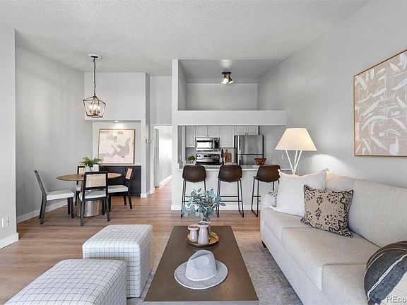 FULLY REMODELED 1 bed / 1 bath condo, just minutes away from both Downtown Castle Rock and Rock Park Open Space & Trails. This second story unit with no neighbors above has been updated with brand new appliances (refrigerator, microwave, range, and stackable washer/dryer IN UNIT), new laminate flooring throughout, new quartz countertops, and all new lighting. The spacious living room features a wood burning fireplace along with direct access to the outdoor patio to make for a functional space to entertain or relax. Back inside, the beautifully updated kitchen flows directly into the dining room making meals from oven to table a breeze. As you enter the bedroom make sure to note the walk-in closet, continued vaulted ceilings allowing for ample amounts of natural light, and picturesque views of The Rock! You will also be delighted to find the completely remodeled bathroom with quartz countertops, updated light fixture, and brand new tub/shower. The unit also comes with two reserved parking spaces, a community pool, and a community friendly sand volleyball court! Round all of this out with the freshly painted building exterior ... You name it, this condo has it! You wont be able to find a condo of this quality at this price anywhere in Douglas County so have your agent schedule a showing ASAP!