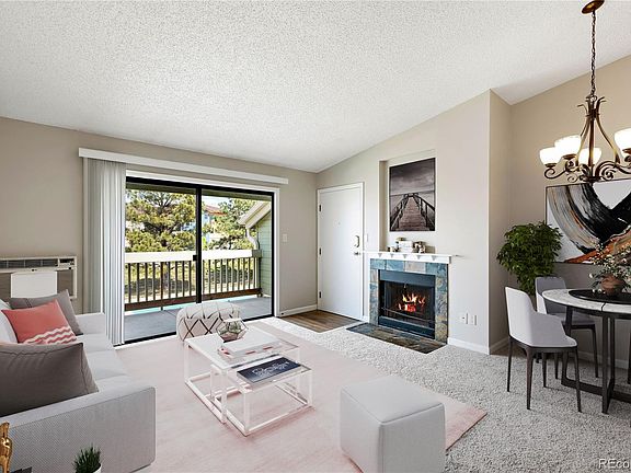 Beautiful light and bright, 2 bed/2 bath condo in the heart of Castle Rock. Fabulous second floor end unit. New interior paint and new flooring complemented by vaulted ceilings and wood burning fireplace welcome you to your new home. Private balcony with views overlooking the swimming pool. Second balcony off the kitchen perfect for grilling. Large primary bedroom with 2 closets and large private bath. The second bedroom boasts a walk-in closet and shared guest bathroom. Washer and Dryer and 2 reserved parking spaces included. Community pool right outside your door as well as a community sand volleyball court. Short distance to historic downtown Castle Rock, Outlet mall, Phillip S. Miller Park, Douglas County High School, restaurants and all that Castle Rock has to offer! HOA Fee covers heat and water, insurance, maintenance grounds, maintenance structure, sewer, snow removal and trash removal.
