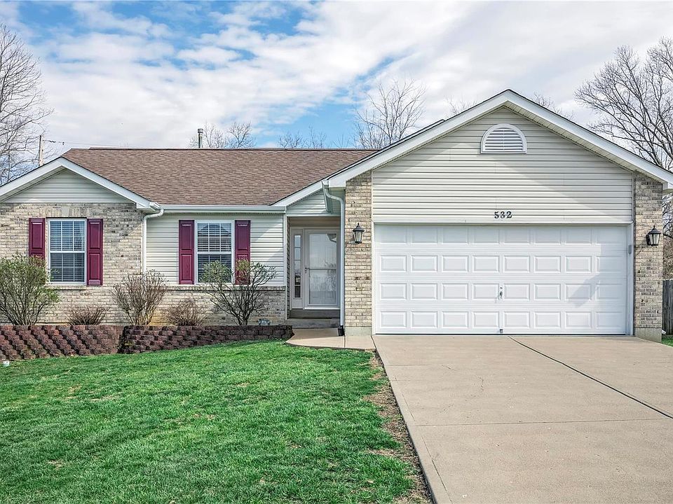 Stylish and sophisticated ranch is remarkably updated & has a fabulous finished lower level. Main Level has been extensively remodeled, boasting a Dream Kitchen with white cabinets, a gorgeous center island, granite counter tops, & black stainless appliances. Inviting & open floor plan has soaring vaulted ceilings & Luxury Vinyl Plank Flooring throughout Great Room, Kitchen & Primary Bedroom. Convenient Main Floor Laundry is just off the kitchen. Primary & Hall Bath have been nicely updated. You will be proud to entertain in the spacious Lower Level Rec Room featuring a stacked stone bar w/ quartz countertop, a bonus room that could be either an office or playroom & a half bath. Fully fenced back yard has a stamped concrete patio & is perfect for hosting outdoor gatherings. Sellers are providing a pre listing inspection for buyer's peace of mind. Exclude tv mounts. Great location in the City of Pevely with easy highway access.