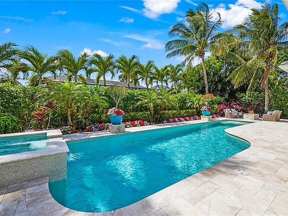 Presenting a truly exceptional custom-built estate in the prestigious Park Shore neighborhood of Naples, Florida. Designed with unparalleled craftsmanship and attention to detail, this award-winning masterpiece blends sophistication, comfort, and a prime location into one extraordinary offering. As you arrive, the home's elegant facade is framed by extensive mature landscaping, setting the stage for the grandeur within. The stunning mahogany front entrance doors open to a light-filled interior with soaring cathedral ceilings, white oak flooring throughout, and a striking fireplace anchoring the living space. The chef's kitchen is a statement in luxury, featuring dual islands, handcrafted Ruffino cabinetry, Calcite quartzite countertops, and top-tier Wolf, Sub-Zero, and Miele appliances. A walk-in pantry and a butler's pantry--complete with a second dishwasher and wine cooler--offer both convenience and refined entertaining options. Designed for both relaxation and hosting, the home boasts an exceptional outdoor living space with total backyard privacy. The south-facing saltwater pool and infinity-edge spa are bathed in sunlight all day, complemented by tranquil fountains, a marble pool deck, and a sun shelf for lounging. The outdoor kitchen, gas fire pit patio, and lanai with a fire pit table create a seamless indoor-outdoor lifestyle, perfect for entertaining under the Naples sky. Thoughtfully designed for guests and residents alike, the first level features a primary wing with spacious closets and a spa-like primary bath, a private guest suite with an en-suite bath, and an office space with custom built-in cabinetry. The second-level VIP suite offers an expansive retreat with an oversized, opulent bathroom, a private balcony, and a loft for added versatility. Perfectly positioned near Naples' renowned beaches, fine dining, and upscale shopping, this exquisite residence delivers the ultimate in luxury and lifestyle--a rare opportunity to own a truly one-of-a-kind home in one of Naples' most sought-after locations. Experience the essence of Park Shore living--schedule your private tour today.
