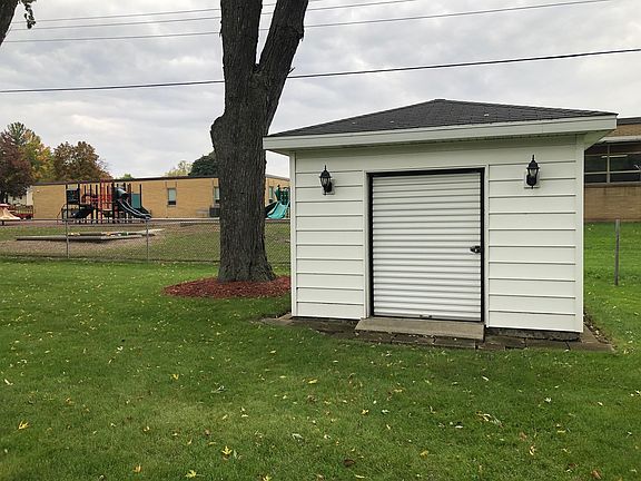 Ranch home has been lovingly cared for years and is super clean! Move right in! Located on a quiet, mature tree-lined street. Full partially finished basement with family room, another room that could be 4th bedroom (was used as a beauty shop) and a large workshop space. Large living room with vibrant red carpeting to meet your eclectic styles. Plenty of room to accommodate the super-size TV's. Primary bedroom has double closets and corner windows. Cozy kitchen has solid surface counter with undermount sink. All appliances stay! Many rooms have been freshly painted too! The Oversize city lot with newer stunning paver patio that offers custom outdoor lighting. 12 x 12 newer shed on the property of extra storage. Amazing garage is 22'5 x 20'8 with professionally surfaced floor, two service doors and pull down stairs for attic. Property backs to the Locust School. Walking distance to Marengo Middle School.