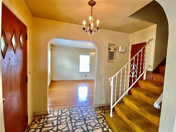 Rare 2,048 sq.ft Cape Cod with a walkout basement on a triple lot! Fenced yard, 2 car garage with covered back patio, updated Roof 2020 + NEWER: Gas Furnace, Electrical Box & More! Love the curb appeal, hardwood flooring, circular floor plan & large room sizes. Entry opens to the Family Room with Fireplace or Formal Dining with a spacious Kitchen. Bedroom 1 or Study on the main has breezeway, garage and bath access. The 2 upper 17x13 Bedrooms have full bath access & hardwood flooring. Downstairs, the Recreation features a Bar, 2nd Kitchen, Full Bath, Laundry, Cedar Closet, Storage & Workshop with Utility. Notice the walkout to the patio, grilling area, landscape pond, play areas & Garage access. Quick access to shopping, entertainment, freeway, Sinclair, University of Dayton & Downtown. Priced- investor special: INCLUDED $8,000 Closing Cost or Update/Repair Credit OR Cash sale at $78,700. Inquire about the inspection report (attached). Big House, Big Yard, Great Investment Potential.