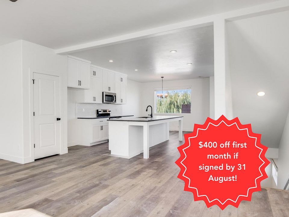 $400 Discount off first months rent, if move-in before August 31st. Wonderful mountain/farmland views from 4 bedroom modern townhome! A great floorplan that creates the feel of TWO Primary Suites. Luxury living in this thoughtfully designed 4 bedroom townhome.(End unit) This open concept features a gorgeous kitchen with a large island, spacious dining and living space to entertain those you love most. A perfect residence for working, living and entertaining from home! High Ceilings and extra large windows provide for great natural light throughout the home. Awesome location in American Fork near I-15, Cinemark, Target, Zupas and much more shopping/restaurants. Direct frontrunner access from the community which makes commuting to UVU, Silicon Slopes & Salt Lake City easy and convenient. Master community features a clubhouse, pool, playgrounds, parks, soccer fields, sports court, pavilion & walking & biking trails. Additional Information: -Landscaping and snow removal taken care of by HOA. -Spacious 2-car garage -New Washer/Dryer can be included at $50/month -All utilities taken care of by tenant -Security Deposit - equal to one months rent -Pet Additional $50/ month + upfront pet fee -Video Tour of similar residence here -Available for lease beginning July 1, 2025 Call today and book a private tour of this brand new townhome!