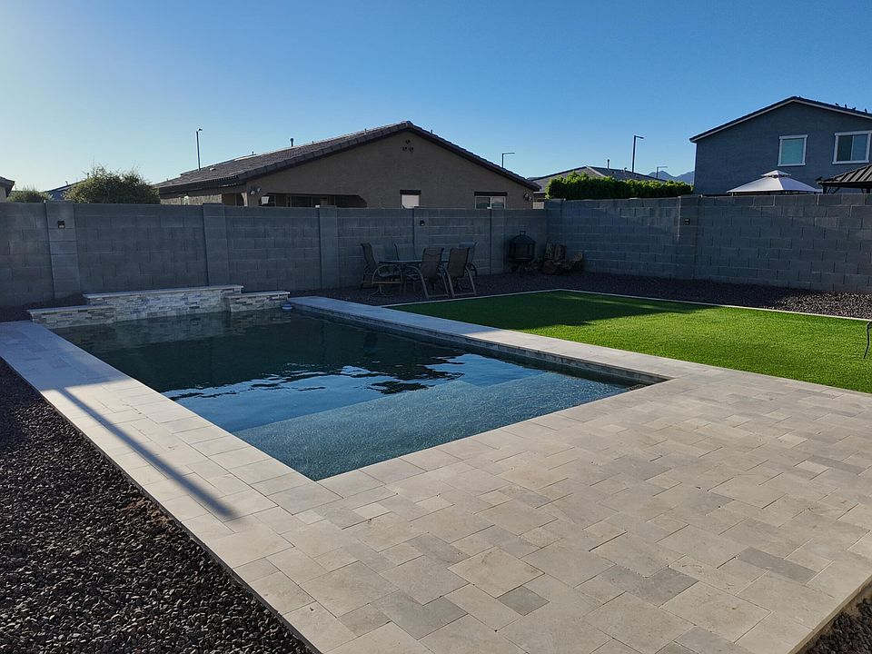 Enjoy a sparkling backyard pool at this well-maintained single-level Buckeye home offering 3 bedrooms plus a den and 2.5 bathrooms. The open floor plan features a spacious great room, modern kitchen with ample storage, and a versatile den ideal for a home office or playroom. The primary suite includes a walk-in closet and private bath. Low-maintenance artificial turf adds to the outdoor retreat. Situated in a desirable community with parks and walking paths, this home combines comfort and convenience.