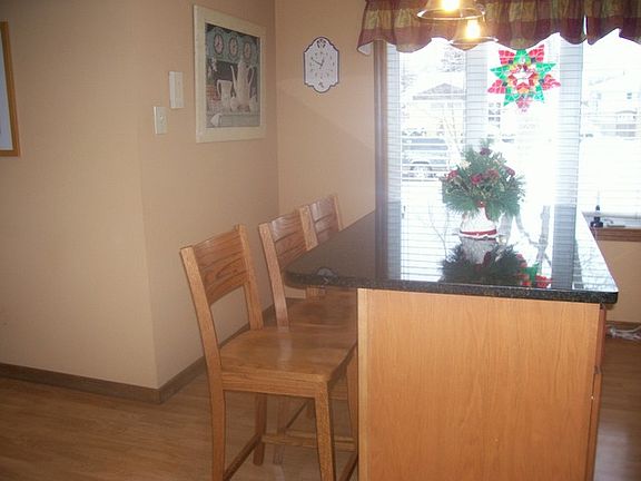 Large custom kitchen, oak cabinets, huge island, Marble & Stainless Steel Appl. Hardwood and laminate floors on first floor, carpet second floor. not a typical rental, beautifully maintained. Huge full bath second floor has soaking tub and corian standing shower. First floor bedroom. 3 full baths. Fin. basement family room fireplace and wet bar. Loads of storage space. Solar panels for energy efficiency.