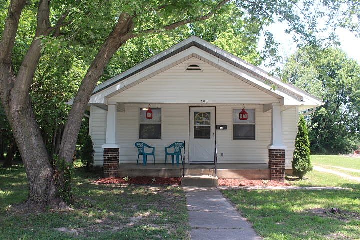 Three bedrooms, two bath bungalow style home with covered front porch. New updated kitchen including all appliances, granite counter top on eat in bar, new laminate flooring and new lighting. Open floor plan with huge living/dining room and kitchen. You won't be disappointed in all the updates made to this lovely home. Master bath has walk-in shower and hall bath has tub/shower combo. One car detached garage/workshop. Large shade trees in front yard.