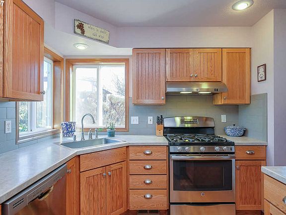 Abundant updates inside & out. Gleaming hwoods thru much of main lvl. Remod kitch, open to spacious fam rm, features newer ss appl, beadboard cabinetry & subway tile backsplash. Formal liv rm has soaring vaults & cozy gas fireplace. Sunny dining rm has lovely bay window. Vaulted master suite has tiled private bath. Canby Garden Club award winning yard has charming picket fence, wrap around porch, covered back patio, lush gardens & shed.