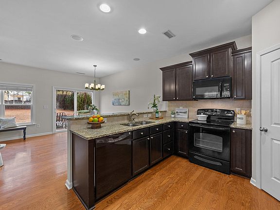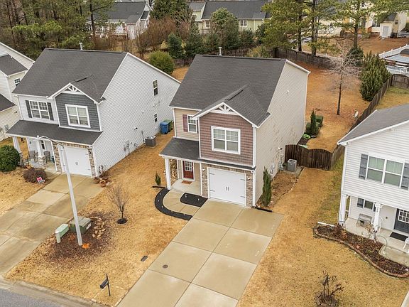 Looking for the perfect place to call home? This beautiful 3-bedroom, 2.5-bath home offers 1,694 sq. ft. of comfortable living space & is just a short stroll to downtown Fuquay-Varina, with easy access to Holly Springs! Step inside to find an inviting open floor plan with wood floors & fresh paint. The living and dining areas are warm and welcoming, centered around a cozy gas log fireplace—perfect for relaxing evenings. The kitchen features granite countertops, stainless steel appliances & a breakfast bar for casual dining. Upstairs, the primary suite feels like a retreat with its trey ceiling, spacious walk-in closet, and spa-like ensuite—complete with a soaking tub, separate shower, and dual vanity. Two additional bedrooms, full bath, & a convenient laundry area round out the second floor. Love the outdoors? The fully fenced backyard offers plenty of space to play, a patio & peaceful pond, making it a great spot to unwind. Plus, smart home features add modern convenience—just move in and start living! This home has a tankless water heater, HVAC has been serviced regularly.