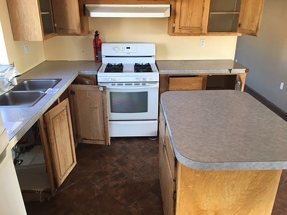 - KITCHEN: GAS RANGE, WOOD CABINETS, ISLAND