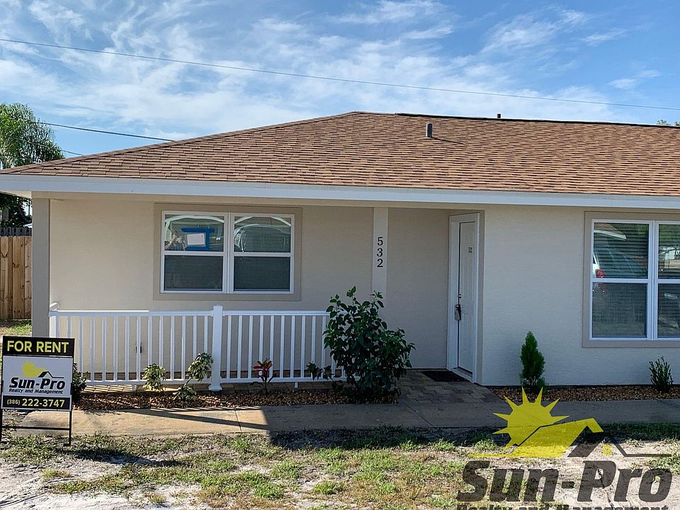 Self-Showing Available! This 2 bedroom 1 bath duplex has been completely remodeled inside. Upgrades include ceramic tile throughout, new light fixtures, crown molding, and much more. The kitchen features a glass tile backsplash, granite counter tops on white shaker cabinetry and black stainless steel appliances. The bathroom is wall to wall tile with an etched glass shower door and granite vanity top. Back yard features full privacy fence and paver patio for entertaining. Washer/dryer included. Lawn service included. Come view his amazing property today you won't be disappointed! Pets are limited to 3 per unit and must be under 50 pounds. $25 per month pet fee for each pet. First month's rent, 1 month security deposit, and $150 admin fee required prior to move-in. Book your self-guided tour today by following this link:
