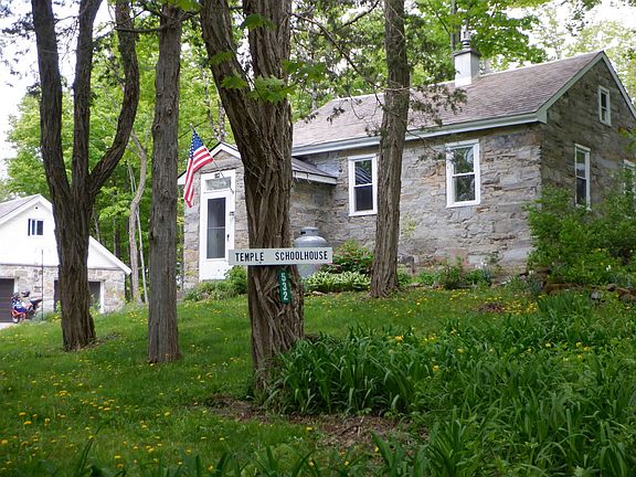 Stone house ( Circa 1826) 2 car garage and 4 stall Horse barn for sale in the quaint Country Town of Benson Vermont. The Stone House has retained many of its original features and it has been updated to make it a comfortable and efficient year round home. This was once the meeting place of the early Mormon settlement in Vermont. Later on it became one of several one room school houses in Benson. It has long since retained its name of the Temple Schoolhouse. There is a book written about it entitled House with a Past ( available for viewing at the property). The Home has a large ( vaulted ceiling) master bedroom and an additional bedroom on the main floor. There is also a cozy bedroom in the loft , ideal for a guest. The living room has a lovely Vt. slate floor and radiant heat.. The eat in kitchen has the original stone faced wall and modern appliances. Off the kitchen is a screened in slate floored porch complete with a hot tub. You can enjoy looking out at the lovely woods and landscaped lot.. Very private.. no other homes in sight! The two car garage has the stone facing matching the Original Home and has its own separate well and septic. There is an upstairs area and it could easily be made into an apartment. A heat pump and bathroom and many other features make this a great option for a shop as well as many other uses. Also included is a 4 stall ( box stalls) Morton Horse barn. Each stall has its own window and exit door, hay rack, grain feeder and mats.