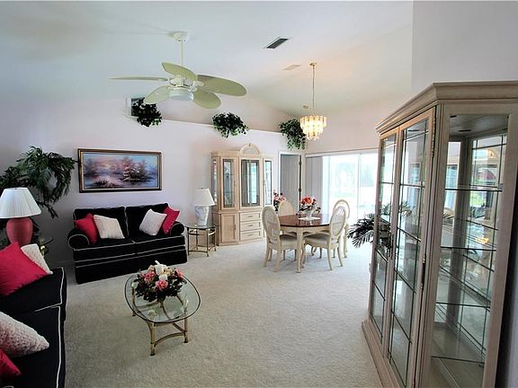 Immaculate waterfront pool home on almost a third of an acre and located in the desirable community of Section 15 has plenty of room for family and friends with almost 2,200 square feet of living space, formal living and dining, family room, eat in kitchen, and dedicated laundry room. This home offers soaring vaulted ceilings, open and split floor plan, plant shelves, color accent walls, blinds throughout, sliders from all main living areas leading to the lanai and pool area with panoramic view of waterway, security system, Manabloc plumbing, public water and sewer, canal fed irrigation system, storm shutters and hurricane code garage door, solar heated pool with newer pool pump, newer laminate flooring and carpet, and new AC system in 2012. Kitchen boasts breakfast nook, pantry and long snack bar. Master suite has 2 walk in closets, and private bath with dual sinks, make up vanity, soaking tub, and separate shower stall. 2nd and 3rd bedrooms also have walk in closets, and 2nd bath has access to the pool. Separate shed provides extra storage space. Enjoy the solar heated pool that was resurfaced in 2012 overlooking the beautiful waterway and serene natural setting or fish from your private dock. Nice curb appeal with mature palms and foliage. Proximity to local beaches, dining, shopping, golf courses, waterfront parks and boat ramps providing access to many waterways, beautiful Charlotte Harbor, and the Gulf of Mexico, makes this property ideal for the Florida lifestyle. And quick access to Interstate 75.