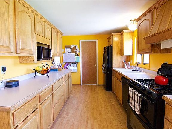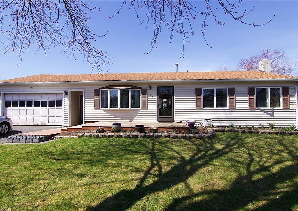 Don't miss this great ranch in Henrietta. Nice bay windows in living room and eat-in kitchen offers plenty of natural light. Family room at rear of the home (approx. 20' x 12') was an addition, and is currently being used as a fourth bedroom. Partially finished basement, with cozy wood-burning fireplace (current owner has never used it) offers loads of potential. Fully fenced in backyard, deck, and double wide driveway complete the exterior charm.
