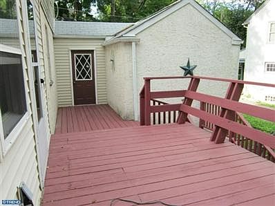 This charming home boasts many upgrades. Newly renovated and expanded kitchen, new central air and natural gas heating system, and a new roof. Walking distance to the library, R-5 train, local shopping & restaurants. The parking area was completely resurfaced in 2012. There is a large wrap around deck w/steps to the completely fenced yard w/trees at the rear. Under the deck is a large patio, mostly covered. The inside of this wonderful home is enteranced to a large living room, and another Living room or fam, rm. There are 2BR's and a wheelchair accessible updated bathroom. The master w/access to the deck, has a dressing room or workout center included. Upstairs are 2 more large bedrooms w/updated bath. The home as all plaster walls and Hardwood Floors. The completely dry basement has lots of storage, a semi-finished area, laundry w/wash tub and O/E to patio. Included in the sale are the washer/dryer, new kitchen appliances, basement refrigerator and chest freezer. All in as is condition. T/E schools. Not a drive-by.