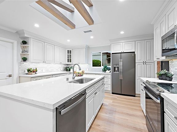 Discover a vibrant collection of architectural details in this upscale custom designed home located in the highly sought-after 55+ community of Laguna Woods Village. The re-imagined El Doble plan showcases an open-concept living area, gourmet kitchen with center island and two expansive owner suites. The home offers a high level of upgraded appointments including stainless-steel appliances, soft-close cabinetry, exquisite quartz countertops, dual pane windows, custom skylights and floorplan design details you won't find anywhere else. An attached 1-car garage offers direct access convenience to this masterfully designed home. A large back patio enhances indoor-outdoor California living. Additional upgrade options could include an added bonus or zoom room and smart-home automation ensuring that your home is fully ready for tomorrow's innovations and new technologies. Enjoy life in this guard gated community featuring 7 clubhouses, 5 swimming pools, 3 fitness centers, 36 holes of golf, tennis, over 250 social clubs and so much more. Why dream of The Good Life when you can live it every day in this spectacularly remodeled home.