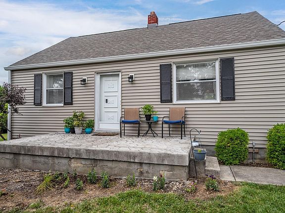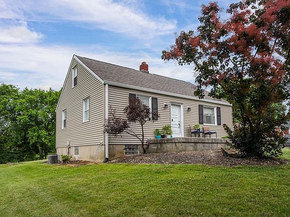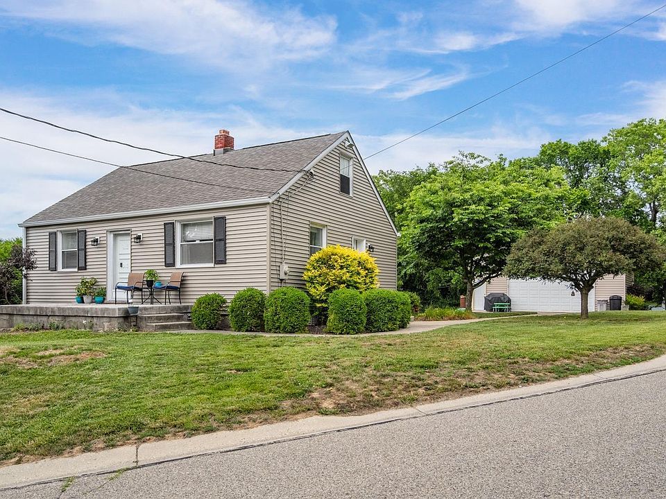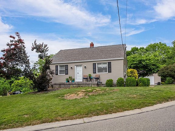 Cozy cape cod with oversized 2 car detached garage 50 x 40 on quiet street yet close to everything! 4 bedroom 2 bath with finished lower level. Siding new 2023, roof/gutters 2022, septic replaced 2018, HWH 2018, Garage plumbed for heat. Invisible fence with 2 collars.