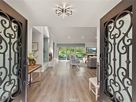 Amazing single-level luxury home with unobstructed views of the Los Coyotes Country Club Valley 8 Fairway. This one-story home has been COMPLETELY REMODELED with leased solar panels, new flooring, cabinets, quartz counters, crown and base molding, LED lighting, new electrical (Solar powered 200 amp electrical panel), new Dual-zoned HVAC with Nest thermostats and 2 water heaters, dual paned vinyl windows and sliders, and custom blinds. The home features a modern kitchen with center island, large living room, and a formal dining room with large windows and panoramic golf course views. It has a master suite with golf course views and steps away to the jacuzzi, a direct access 3 car garage, a laundry room with utility sink, office with glass French doors, a modern kitchen with quartz counters, large center island, walk-in pantry, built-in fridge, stainless steel appliances, and farmer's sink.