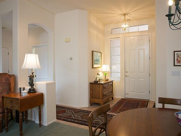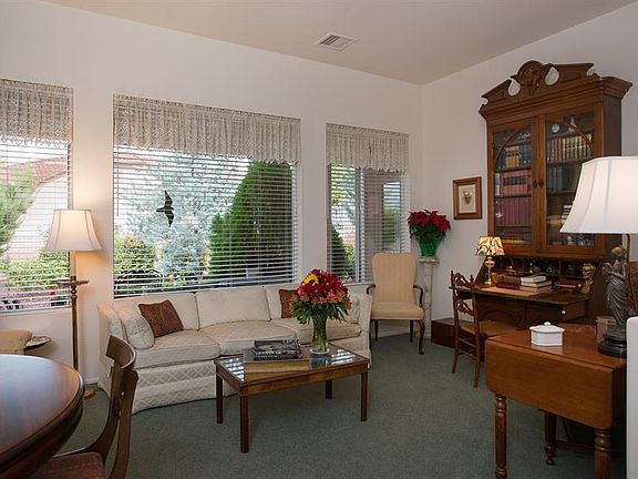This home has been pre-inspected to prepare it for marketing. Attractive curb appeal situated on a quiet corner with mature landscaping. A walled front courtyard with gate is spacious enough for some garden areas and partially covered good seating area for watching the sunsets. This home has an appealing floorplan with tile flooring through all the traffic areas, bathrooms, kitchen, family room and den/office. The kitchen is spacious, lots of cabinet storage, breakfast nook, attractive accent wall color and overlooks both the living/dining room and the family room. The family room is comfortable with a gas log fireplace. Adjacent is a sizeable den/office/hobby room which can easily handle two desks. The room has great light and nice views.A guest bedroom and bath are on this side of the house. On the opposite end of the house is the Owners' Suite and Bath with a door to the rear covered patio. The Owner's bath is tiled with an easy walk-in shower and large walk-in closet. The laundry room is close to the Owners' Suite and leads to the 3-car garage with built-in cabinetry, utility sink and side door to backyard. The covered patio is beautiful with mature landscaping for privacy. The yard is fenced. A patio extension allows for some uncovered area. All appliances are included. A Homeowners' Warranty is included. Natural gas heating and hot water. Central air conditioning. On central sewer.