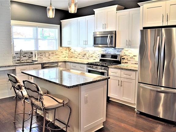 RECENTLY UPDATED 4 BED, 2.5 BATH W/ DETACHED GARAGE which has 2 CAR PARKING!! Kitchen has custom tile backsplash and newer stainless steel appliances. Hardwood floors throughout the house. Wainscoting can be found along the wall on the main floor and a stunning half bath with an entire tiled accent wall. A wooden staircase with a wrought iron railing leads you up to the second floor where the master bedroom and bathroom are located. Spacious master bedroom with his/hers closets and a huge master bathroom W/ double vanity and marble tiled shower. You'll find another large bedroom and full bath, along with a room dedicated to the W/D. The third floor is finished with two other bedrooms. IF THAT'S ENOUGH there is even a gorgeous deck and courtyard out back perfect for BBQ's or parties!!