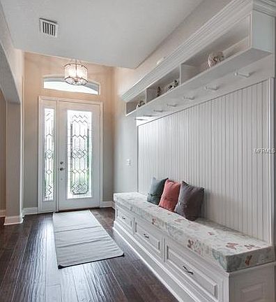 Kinsley Court South Lakeland! Great school district and ZERO down USDA 100% financing eligible. Large "Portico style" entryway with glass door opens onto a beautiful wood foyer with custom built-ins. The living areas look out over the conservation preserve and has an amazing enclosed pool and patio. The patio area also has an outdoor kitchen with sink, refrigerator, and a grill. This outdoor space is perfect for parties and entertaining! The 10 foot ceilings and tray ceilings in living and master bedroom gives this home a unique distinction. The kitchen is open to the family room, and has stainless steel Samsung gas appliances, white cabinetry and beautiful, solid granite counter tops with subway tile back splash. The breakfast nook has custom built-in seating with storage. These detailed features make this home very entertainment friendly. The split floor plan features three bedrooms and two bathrooms on one side and the master suite on the opposite side. Large Master features the pool view, his and her closets, master bath has separate shower and garden tub, double sinks and water closet. All wet areas have beautiful, large ceramic tile, including the inside utility room. This house is located in a cul-de-sac and has the best curb appeal Call for an appointment to see it before it is sold quickly.