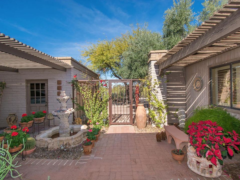 As you enter this enchanting courtyard you will be surrounded by beautiful mountain views. You will also enjoy the city views from your kitchen and large covered patio. The updated kitchen has granite counters and backsplash with newer S/S appliances. Formal living room with stacked stone fireplace, D/R that opens to the patio. The M/B has an additional private sitting room with a beehive fireplace, a large walk-in CA closet. The original owner has taken excellent care of this delightful home and is move in ready! Both HVAC were replaced 1 year ago, roof has been recently recoated, freshly painted inside and out. The backyard has a play pool, spa, and a wonderful Ramada. This Foothills home sits on almost an acre and is conveniently located to shopping, restaurants, U of A & down town.